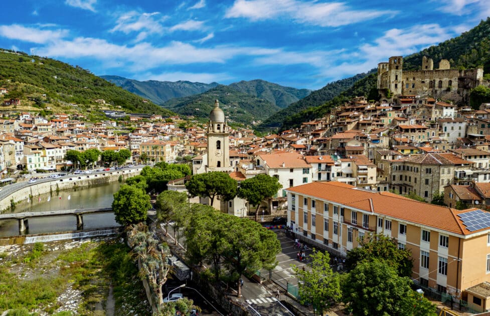 Dolceacqua, dont l’histoire remonte au XIIe siècle avec les comtes de Vintimille, a vu son développement marqué par la puissante famille Doria de Gênes. La ville s’est divisée en deux quartiers distincts au fil des siècles : « La Terre », autour de la forteresse, où des ruelles concentriques mènent à la place principale, et « Borgo », de l’autre côté de la rivière, relié par le Ponte Vecchio, une arche en pierre de 33 mètres de style médiéval.